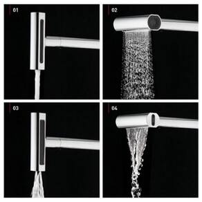 4. Cascata. As sensações de luxo e relaxamento são alcançadas com esta função, por conta do fluxo suave e contínuo. A cascata oferece um volume amplo e uniforme, tornando mais fácil encher panelas. Além da funcionalidade, o jato de cascata também é um ganho estético para o espaço.