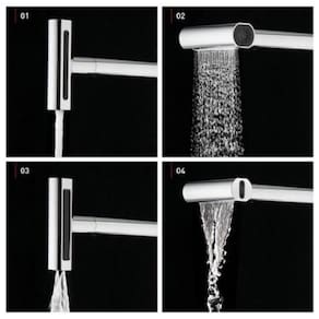 4. Cascata. As sensações de luxo e relaxamento são alcançadas com esta função, por conta do fluxo suave e contínuo. A cascata oferece um volume amplo e uniforme, tornando mais fácil encher panelas. Além da funcionalidade, o jato de cascata também é um ganho estético para o espaço. Marca: Não Informado