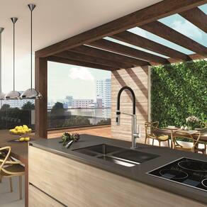 Misturador Monocomando Para Cozinha de Mesa Bica Alta Docol Doc Cromada Com Preto.Modelo DocCor: Cromo/PretoMarca: DocolReferência: 00695757Dimensões: 266x556mmCartucho com pastilha cerâmica de alta performance ¼ de volta: Maior facilidade e precisão na regulagem da vazão, com acionamento leve e vedação perfeita;Bitola: 1/2;Ducha manual: praticidade e fácil encaixe;Volante em alavanca que proporciona maior leveza na abertura e no fechamento;Bica giratória com rotação de 360 que proporciona flexibilidade e otimiza espaço;O arejador embutido, além de garantir economia de água, conforto para as mãos e evitar respingos, deixa o visual da bica mais clean;Funcionamento perfeito em baixa e alta pressão, de 0,2 a 4 kgf/cm ou 3 a 57 psi;Acabamento cromado biníquel de alta resistência à corrosão, conservando a beleza do produto por muito mais tempo;Produto novo, lacrado com nota fiscal e garantia por tempo indeterminado;Garantia toda vida: qualidade e segurança por tempo indeterminado. Ean: 7891461200763