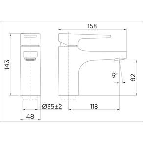 Dimensões - Comprimento do produto: 158 mm. - Altura do produto: 143 mm. - Largura do produto: 48 mm. - Diâmetro do furo para instalação: 35mm. - Peso Líquido: 1,912 kg.