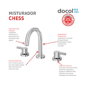 Bom design, beleza e harmonia visual. Isso e muito mais nos produtos Docol. Confira um deles: Misturador para banheiro bica alta Chess