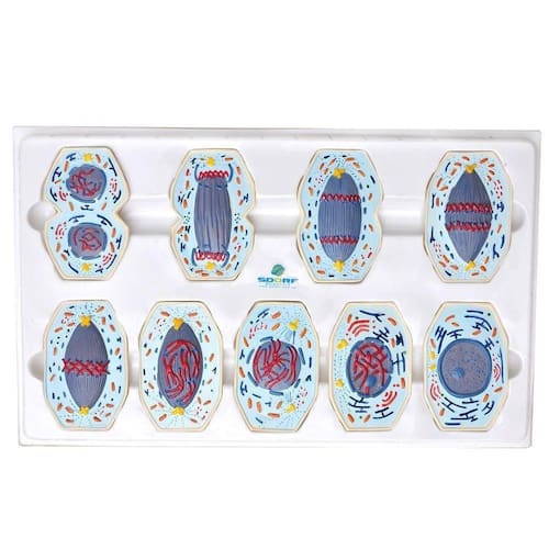 *1. Este modelo é apresentado em cores, facilitando a identificação e a identificação dos elementos celular ; Sua apresentação pode ser fixada em parede, pedestal ou até mesmo com seus 9 elementos separados em uma superfície; Com o modelo SD-5070 é possível identifica dentre outras estruturas: * 1. Interfase; * 2. Prófase; * 3. Pro Metáfase Inicial; * 4. Pro Metáfase Final; * 5. Metáfase; * 6. Anáfase Inicial; * 7. Anáfase Final, * 8. Telófase; * 9. Citocinese.