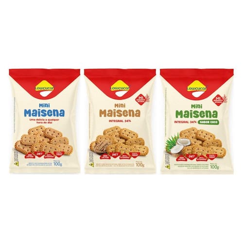 Kit Mini Maisena 100g - 3 Sabores Lowçucar Clássico, integral e com coco: sabor e tradição em um só kit O Kit Mini Maisena Lowçucar 100g reúne três versões deliciosas e práticas para o dia a dia: Tradicional, Integral 34% e Integral 34% com Coco. Uma seleção feita para quem aprecia o sabor inconfundível dos biscoitos maisena, mas também busca variedade e equilíbrio. Com textura leve, crocante e sabor marcante, os Mini Maisena Lowçucar são ideais para acompanhar café, chá, sucos ou para compor lanches rápidos e sobremesas. Pequenos no tamanho, mas grandes na versatilidade, conquistam adultos e crianças em qualquer ocasião. Diferenciais do Produto Kit com 3 sabores: Tradicional, Integral 34% e Integral 34% com Coco Textura leve e crocante Embalagens práticas de 100g cada Produzidos com a qualidade da marca Lowçucar Versáteis: ideais para lanches, receitas e sobremesas Sugestões de Consumo Com café, chá ou leite nos intervalos do dia Como base para sobremesas, tortas e pavês Lanche rápido e saboroso para toda a família Alternativa prática para viagens, piqueniques ou no trabalho Informações do Produto Produto: Kit Mini Maisena Lowçucar Sabores: Tradicional, Integral 34% e Integral 34% com Coco Peso: 100g cada embalagem Marca: Lowçucar Marca: Não Informado Ean: 7908688885519