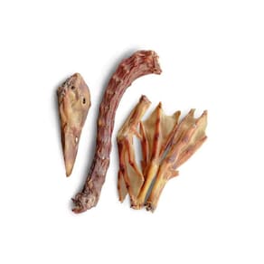 Contém 5 unidades, 1 cabeça, 1 pescoço e 3 pés de pato. Este mastigável, de baixa rigidez, possui uma aparência impactante, pois é feito a partir da cabeça do pato. Ótima opção para cães alérgicos por se tratar de uma proteína exótica. É importante ressaltar que a matéria-prima deste produto é obtida de criadores e abatedouros certificados que fornecem para a alimentação humana. Aproveitamos os subprodutos da espécie e os transformamos em saúde e bem-estar para os animais de estimação. A cabeça possui formato apropriado para combinar com brinquedos para enriquecimento ambiental como a jw holee roller. Os pés e pescoço podem ser utilizados como topper, combinado com brinquedos recheáveis, para prolongar o tempo de interação e aumentar a duração do enriquecimento ambiental. Dificuldade: fácil. Apropriado para cães saudáveis de todos os portes. Composição básica: cabeça, pescoço e pés de pato desidratado. Petisco 100% natural, feito com ingrediente de origem animal e desidratado lentamente em temperatura controlada garantindo maior durabilidade e conservação do produto sem uso de químicos. Marca: Não Informado Ean: 7898755240276