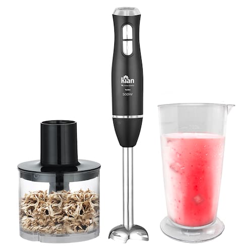 Mixer 2 em 1 Turbo Kian 500W, ideal para misturar, bater e triturar alimentos. Possui função turbo para maior rapidez e precisão.Acompanha copo