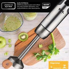 Este aparelho multifuncional combina mixer, processador e batedor em um único equipamento, tornando o preparo de alimentos muito mais fácil. Ideal para preparar vitaminas, molhos, cremes, massas leves e triturar ingredientes.
