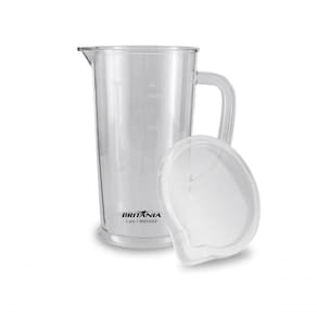 Copo e jarra com tampa: capacidades úteis para preparar e servir com praticidade.