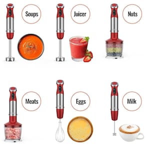 Mixer 4 em 1 KOIOS HB 2046 com 12 velocidades, design ergonômico, função de pulso, copo medidor de 600ml, acessório para misturar e picador de 500ml. Fácil de limpar e pode ser lavado na lava-louças.Acompanha copo