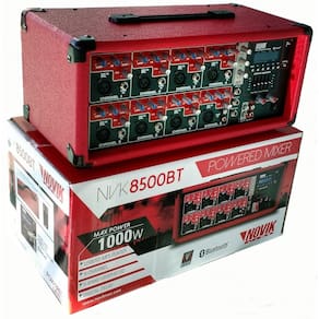 Console de 8 canais com entrada para mic e line amplificado e leitor de mp3/ Bluetooth