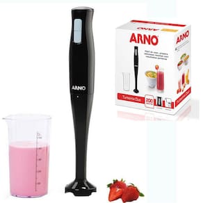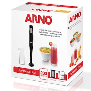 Mixer Turbomix Duo MX21 110V pretoMais facilidade no seu dia a dia Possui 200W de potência, 2 velocidades para adequar aos diferentes alimentos e copo medidor de 500ML. Compacto e eficiente, o TurboMix Duo possui uma lâmina de aço inoxidável, mais durável, que não enferruja e pode ser usado direto na panela ou levado na máquina de lavar louça. Fácil de usar, prepare deliciosas receitas com resultados perfeitos. Prepare receitas variadas como sucos, vitaminas, sopas e caldos de forma rápida e prática. Características Principais:Marca: ArnoModelo: MX21Voltagem: 127VVelocidades: 2Cor: Preto