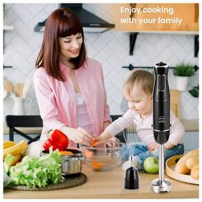Mixer 5 em 1 com operação de um toque, multifuncional. Lâminas de aço inoxidável revestidas de titânio resistente. Motor todo em cobre de 500W a 1100W com baixo ruído. Design destacável para fácil limpeza. Proteção contra superaquecimento com desligamento automático.Acompanha copo
