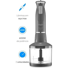 Aproveite a versatilidade do Mixer Power Inox da Elgin. Com 600W de potência e duas velocidades, ele mistura e tritura alimentos em instantes, proporcionando resultados rápidos e eficientes. Além disso, esse aparelho é 3 em 1, atuando como mixer, triturador e batedor de ovos ou massas leves, oferecendo múltiplas funcionalidades em um único dispositivo. Prepare suas receitas de forma prática e rápida com o miniprocessador integrado que vem com o mixer, possui capacidade para 400 ml, ideal para triturar e picar alimentos. Para maior comodidade, o produto também acompanha um copo para misturas com capacidade de 700 ml e fouet flexível permite bater ovos, claras ou massas leves com facilidade. Suas lâminas afiadas em aço de alta performance garantem resultados excepcionais em todas as preparações. Além disso, o conjunto do mixer é desmontável, tornando a limpeza uma tarefa simples e prática. Sua empunhadura ergonômica garante firmeza e segurança durante o uso, e a alça para pendurar oferece praticidade tanto no momento de utilizá-lo quanto no armazenamento, otimizando o espaço na sua cozinha. Não perca a oportunidade de experimentar toda a praticidade e eficiência do Mixer Power Inox da Elgin e eleve suas habilidades culinárias a um novo nível.