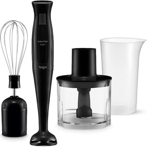 Se você gosta de praticidade na cozinha, aproveite a versatilidade do Mixer Turbo Chef da Elgin. Possui 200w de potência oferecem alta performance e agilidade para misturar ou triturar alimentos em instantes. O aparelho é 3 em 1: mixer, triturador e batedor de ovos ou massas leves. Acompanha miniprocessador para triturar e picar alimentos com capacidade para 0,3 litros, copo para misturas com capacidade de 700 ml, lâminas em aço afiadas de alta performance, fouet flexível para bater ovos, claras ou massas leves. O conjunto é desmontável e de fácil limpeza. Possui empunhadura ergonômica que proporciona firmeza e segurança. Vem com alça para pendurar que proporciona praticidade tanto no uso quanto no armazenamento.