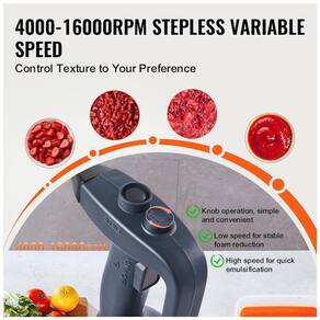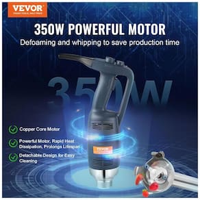 Mixer elétrico de imersão VEVOR com motor de cobre puro de 350W, controle de velocidade, design de segurança com botão de início, cabo ergonômico e lâmina de aço inoxidável.Acompanha copo