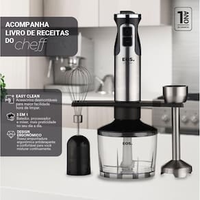 Mixer EOS 3 em 1, mistura, processa e bate alimentos. Design elegante e versátil.Acompanha copo