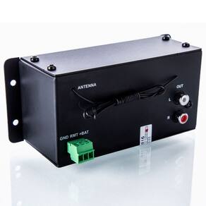 Especificações Técnicas • Tensão de Alimentação: 10 a 24Vdc • Consumo de corrente: 0,12A • Saída remoto para acionamento do amplificador • Resposta de frequência: 20Hz a 35kHz • Impedância entrada do microfone: 1000kohm • Impedância saída RCA: 1kohm • Controle de graves/agudos: +/-10dB • Dimensões: 145x62x50 mm • Peso: 410g