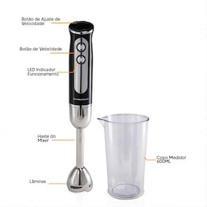 Com um copo de 600ml, o mixer é ideal para porções pequenas e médias, permitindo que você misture ingredientes de forma rápida e prática. Seu design compacto facilita o armazenamento e o manuseio, tornando-o um excelente aliado no dia a dia.