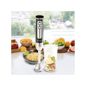 Mixer com 8 velocidades e 800W de potência. Lâminas em aço inoxidável. Design ergonômico. Haste removível e lavável na máquina de lavar louça.Acompanha copo