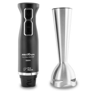 Mixer Britânia Inox Maxx BMX355P com 350W de potência, 4 lâminas em inox, função turbo, copo dosador de 1050ml (útil 800ml), design ergonômico, haste em inox e suporte de parede.Acompanha copo