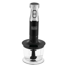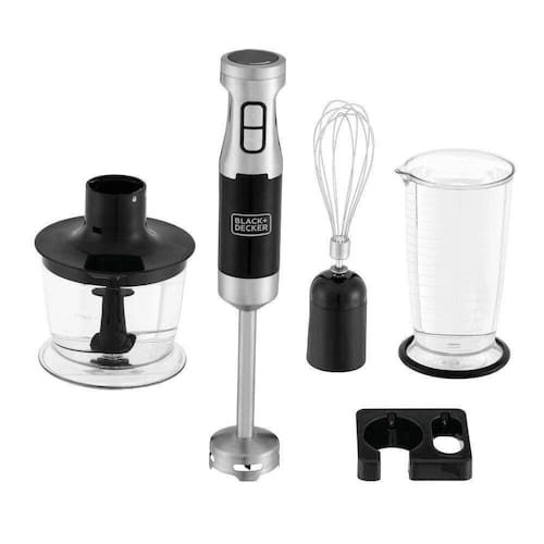 Mixer vertical 3 em 1 Black Decker com 2 velocidades, acompanha mini processador, copo medidor de 700ml e batedor de claras. Possui haste em inox desmontável e suporte de parede com organizador para cabo elétrico.Acompanha copo