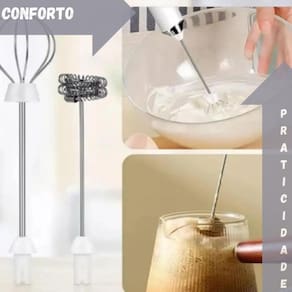 Características Gerais do produto Leve (200g), 3 opções de velocidade, Bateria recarregável via USB, Haste emetros inox remetrosovível, Ideal para bebidas quentes e geladas, metrosisturar metrosolhos e bater ovos.