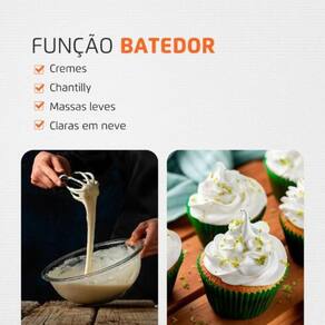 3 EM 1: IDEAL PARA A SUA COZINHA: São três funcionalidades: MIXER, BATEDOR e TRITURADOR. O batedor de claras em neve é ideal para bater massas leves, cremes e chantilly. Já o triturador funciona como processador de alimentos e é indicado para picar vegetais, legumes, ervas, temperos. Com a função mixer, você pode produzir sopas, papinhas de bebê, molhos, milk-shakes, sucos, vitaminas, e muito mais!