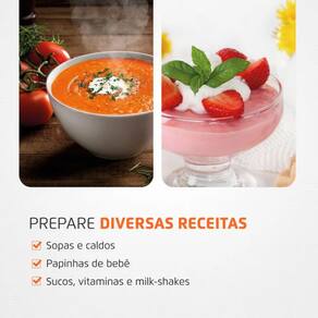 PREPARE RECEITAS RAPIDAMENTE E GANHE TEMPO Se você busca uma textura cremosa e homogênea e ainda quer economizar seu tempo na cozinha, garanta já o seu!