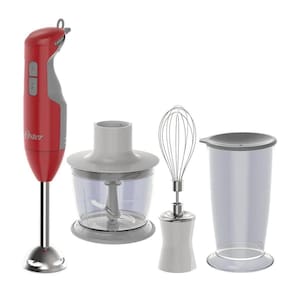 ITENS INCLUSOS: - Mixer Oster Delight Vermelho - Copo medidor com tampa - Recipiente para triturar legumes - Batedor de claras - Manual de instruções