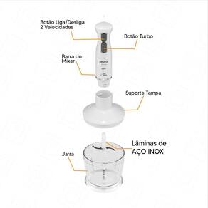 Transforme sua experiência culinária com o Mixer PMX1000 da Philco. Desenvolvido para facilitar o preparo das suas receitas favoritas, este mixer oferece potência, durabilidade e uma série de funcionalidades que vão desde misturas rápidas até a preparação de massas e sopas. Com 1000W de potência, o PMX1000 lida facilmente com diferentes tipos de ingredientes, garantindo resultados rápidos e consistentes. Seja para bater, misturar ou triturar, este mixer oferece a força que você precisa. O design moderno e ergonômico do PMX1000 proporciona conforto durante o uso, com um cabo anatômico que se encaixa perfeitamente na mão, reduzindo a fadiga mesmo após longos períodos de uso. Ajuste a velocidade conforme a necessidade da sua receita com o controle de velocidade variável. Desde misturas delicadas até a trituração de alimentos mais duros, você tem total controle sobre o processo. As lâminas em aço inoxidável garantem durabilidade e precisão no corte, proporcionando resultados homogêneos e rápidos. Ideal para preparar smoothies, purês, molhos e muito mais. O PMX1000 acompanha um kit de acessórios versáteis, incluindo um copo medidor, um batedor de arames e um processador de alimentos. Tudo o que você precisa para diversificar suas receitas e explorar novas possibilidades na cozinha. As partes removíveis do mixer são laváveis e fáceis de limpar, garantindo praticidade no dia a dia. Além disso, as lâminas e os acessórios podem ser lavados na lava-louças, facilitando ainda mais a manutenção. Design Compacto: O mixer PMX1000 é compacto e fácil de armazenar, ocupando pouco espaço na sua cozinha. Ideal para quem busca funcionalidade sem abrir mão do espaço. Especificações Técnicas: -marca: Philco -modelo: PMX1000 -potência: 500W -voltagem: 220v -cor: Branco -design: Compacto -mixer: 3 funções -velocidades: 2 velocidades -função Turbo: Sim -lâmina: Pro Maxx / Faca com 4 lâminas -material da Lâmina: Aço Inoxidável -capacidade do Copo: 950ml -capacidade útil do Copo: 600ml -capacidade da Jarra: 1,2 Litros -capacidade Útil da Jarra: 600ml -desmontável: Sim -dimensões LxAxC : 5 x 40 x 9 cm -peso Líquido:1,148Kg -peso Bruto: 1,237 Kg Itens inclusos: -01 Mixer PMX1000 da Philco 220v -01 Copo de 950ml -01 Jarra 1,2 Litros -01 Manual -garantia:12 meses