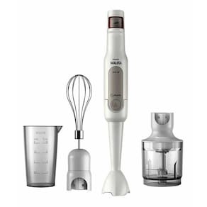 Mais cor, design e praticidade para fazer suas receitas. O Mixer Philips Walita Pro Mix RI2622/4 é completo, possui 3 produtos em 1, com função de mixer, miniprocessador e batedor de claras.