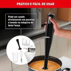 O uso direto em panelas é uma grande vantagem, evitando a transferência de alimentos e reduzindo a sujeira. A máquina também pode ser lavada na máquina de lavar louças, tornando a limpeza uma tarefa rápida e simples. A única consideração a ter é a escolha da voltagem correta, pois o produto não é bivolt. Escolha entre 110V ou 220V de acordo com a sua necessidade.