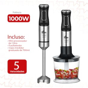 Mixer Turbo 3 em 1 Kian com potência de 1000W, 5 velocidades, função turbo, ideal para misturar, triturar e bater ingredientes.Acompanha copo