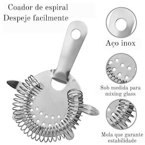Conteúdo da embalagem: 1 Coador modelo Hawthorne Strainer em aço inox. 1 Copo Mixing glass video Barpro 700ml.
