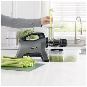 APROVADO PELO MEDICAL MEDIUM Este espremedor Omega é endossado por Anthony William, The Medical Medium, com base em seu alto desempenho e em espremer a quantidade máxima de suco de aipo OTIMIZADO PARA AIPO Dica de suco Use talos de aipo frescos, frios e inteiros para alimentar a calha em vez de cortar em pedaços pequenos ao fazer o suco. Fornece extração máxima de suco espremendo o aipo por mais tempo, para mais suco e menos desperdício SUCO VERSÁTIL Inclui 2 tampas de extremidade ajustáveis, uma projetada para o aipo para obter mais suco de seu aipo e uma tampa de extremidade padrão para espremer todos os outros produtos BPA FREE JUICER Juicer é livre de BPA para paz de espírito e sucos saudáveis