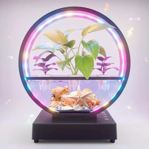 Este produto é uma peça decorativa interna que combina perfeitamente tecnologia moderna com arte. Com sua fusão inteligente de dinamismo e tranquilidade, seu design circular e harmonioso, efeitos de iluminação coloridos e vibrantes, caixa de som por bluetooth melodiosa, e ecossistema hidropônico alegre, este produto promete entregar um pináculo de prazer para os seus sentidos visual, auditivo e psicológico.