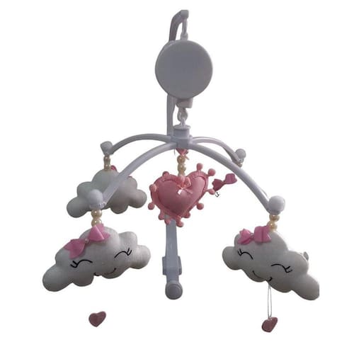Mobile Berço Musical Giratório Nuvem Menina Rosa FeltroMobile berço musical e giratorioAltura 40cm, diametro 32cmRoduzido em plastico ABS altamente resistente e atóxicoFixavel facilmente no berço atraves de rosca ajustavel na lateral do berçoSeu sistema musical e giratório funciona a corda dispensando uso de pilhas ou bateriasPossui trava para interromper a musica quando quiserMusica toca aprox. 2min sua melodia acalma o bebe Marca: Fada Artesã