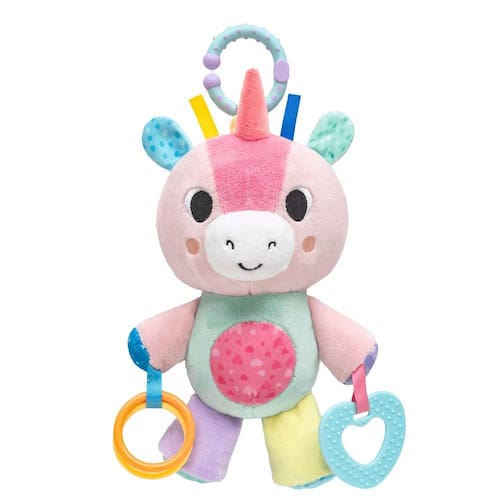 Material - Tecido: 100% Poliester; Chocalho: 100% Poliestireno (PS);Buzina: 100% Acetato-Vinilo de Etileno (EVA); Cabide: 75%Polipropileno (PP)+25% Acetato-Vinilo de Etileno (EVA); Mordedor: 100% Acetato-Vinilo de Etileno (EVA); Anel: 100%Acrilonitrila Butadieno Estireno (ABS).
