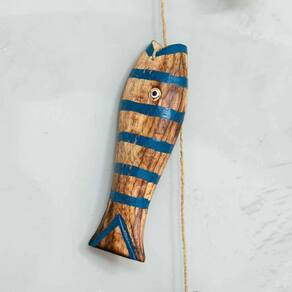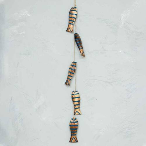 Móbile Decorativo 5 Peixes Madeira Balsa Importado de Bali Marrom & Azul Móbile Decorativo 5 Peixes Madeira Balsa Importado de Bali Marrom & Azul