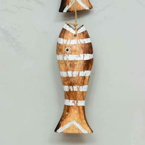 Móbile Decorativo 5 Peixes Madeira Balsa Importado de Bali Marrom & Branco Móbile Decorativo 5 Peixes Madeira Balsa Importado de Bali Marrom & Branco