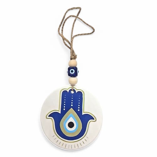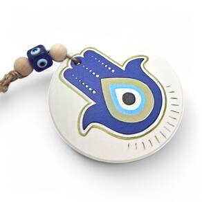 Móbile Mão Hamsá Olho Grego Branco Afasta Mau Olhado 7 cm