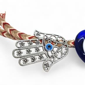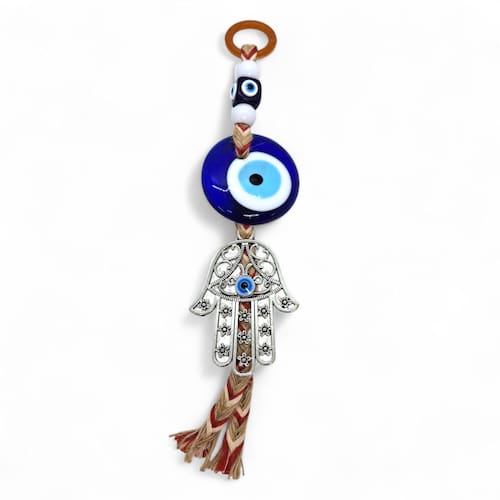 Móbile Mão Hamsá Prata Olho Grego Afasta Mau Olhado 27 cm