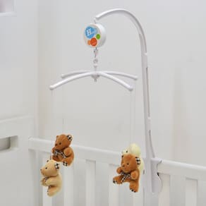 Reproduz músicas de ninar suaves para o bebê, com haste para fácil fixação no berço. Além de acalmar e entreter o bebê, ajuda no desenvolvimento da percepção de movimento, afetividade e imaginação de fantasia.
