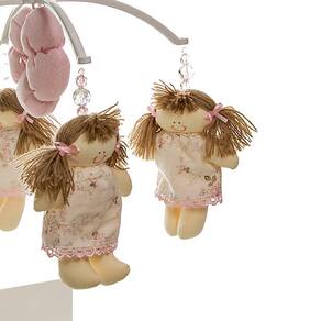 O momento do bebê em seu berço tem que ser relaxante e, ao mesmo tempo, deve ter elementos de entretenimento. O nosso móbile tem uma música agradável que vai embalar o sono dos pequenos e, ao acordar, terá lindos enfeites para entreterse estimulando a coordenação motora e visual do nenê. Dados TécnicosMóbile musical com estrutura em plástico decorado com bonequinhas e florzinha de tecido presas com cordão encerado altamente resistente.Algumas peças da decoração central pode ter variações de acordo com a disponibilidade no momento. FixaçãoA estrutura do móbile pode ser fixada no berço através de rosca ajustável. Informações adicionaisO móbile possui sistema giratório movido à corda portanto não utiliza pilhas.A música tocada pelo móbile é suave sendo agradável para o bebê e a duração do som ao rotacionar toda a corda pode variar de 2 a 3 minutos. INMETROProduto decorativo. MedidasAltura: 55 cmLargura da Haste Decorada: 29 cm x 29 cmHomologação Inmetro: CE-BRI/IQB 006455 55098/22-001