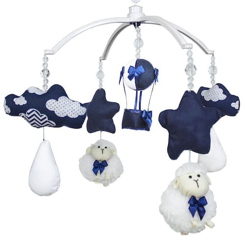 Móbile Musical Carneiro, Nuvens E Balão Marinho Quarto Bebê Infantil Menino O momento do bebê em seu berço tem que ser relaxante e, ao mesmo tempo, deve ter elementos de entretenimento. O nosso móbile tem uma música agradável que vai embalar o sono dos pequenos e, ao acordar, terá lindos enfeites para entreter-se estimulando a coordenação motora e visual do nenê.Br /br /