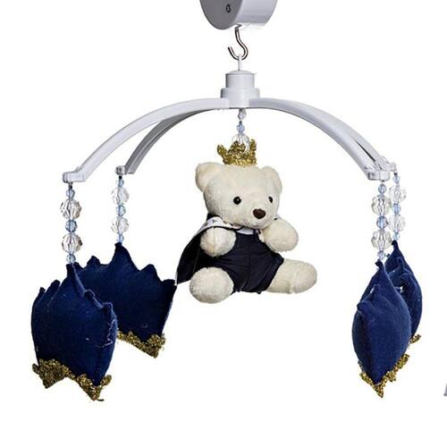 O momento do bebê em seu berço tem que ser relaxante e, ao mesmo tempo, deve ter elementos de entretenimento. O nosso móbile tem uma música agradável que vai embalar o sono dos pequenos e, ao acordar, terá lindos enfeites para entreterse estimulando a coordenação motora e visual do nenê. Dados TécnicosMóbile musical com estrutura em plástico decorado com ursinho príncipe e corôas de feltro presos com cordão encerado altamente resistente.Algumas peças da decoração central pode ter variações de acordo com a disponibilidade no momento. FixaçãoA estrutura do móbile pode ser fixada no berço através de rosca ajustável. Informações adicionaisO móbile possui sistema giratório movido à corda portanto não utiliza pilhas.A música tocada pelo móbile é suave sendo agradável para o bebê e a duração do som ao rotacionar toda a corda pode variar de 2 a 3 minutos. INMETROProduto decorativo. MedidasAltura: 55 cmLargura da Haste Decorada: 29 cm x 29 cmHomologação Inmetro: IP-BRI-0114/18