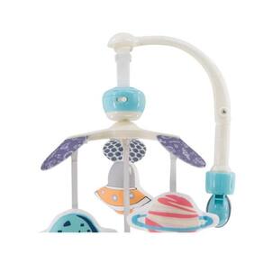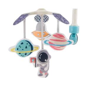 Dobrável e portátil; Fácil de ajustar em berço e carrinho; 30 minutos de música com 6 melodias suaves; 4 Brinquedos lúdicos e coloridos que giram; Brinquedos: 1 Astronauta, 2 Planetas e 1 Nave Espacial; Utiliza 2 pilhas AA não inclusas; Gênero unissex; Indicado para crianças a partir de 0 meses.