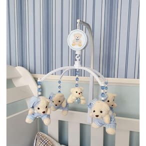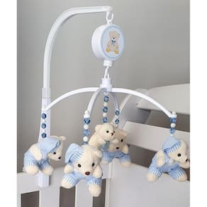 Mobile para berço bebê musical urso soneca Marca: erich baby Produto certificado pelo inmetro Ce-bri/iqb - 6437 nm 300/2002 Segurança do brinquedo O móbile é um item muito importante na decoração, bastante gracioso, meigo e lúdico Seu movimento vai entreter o bebê dentro do bercinho, ideal para embalar o sono do neném Os móbiles musicais são ótimos para estimular audição e visão do bebê. Não é a toa que eles são pendurados acima do seu amor. Especialistas dizem que os móbiles ainda estimulam o senso de direção e lateralidade, fazendo com que a criança acompanhe o objeto de um lado para o outro. Pensando em todos os benefícios para o bebê, a montagem do móbile é feita com os ursinhos olhando para baixo, para o bebê visualizar o ursinho por completo e estimula-lo ainda mais. Conteúdo: - mobile musical e giratório com 4 bichos de pelúcia - acompanha 1 suporte para fixar no berço e caixa de música à corda sem necessidade de uso de pilha. Contém a trava de interrupção, a canção dura em média de 2 a 3 minutos. Cores e estampas podem ser alteradas segundo nosso . Medidas: - bichinho de pelúcia 9 cm - suporte móbile: Altura: 55.00 cm Largura: 35.00 cm Comprimento: 45.00 cm Peso: 360 gramas Modo de montar: O suporte se encaixa em qualquer berço desmontável, chiqueirinho, carrinho e berço americano. Basta encaixar as peças e rosquear no berço que o móbile estará preso. Limpeza: Basta limpar com pano úmido. Embalagem: Largura 22,00 cm Altura 8,00cm Comprimento 31,00 cm Peso 500,00 g Marca: Não Informado