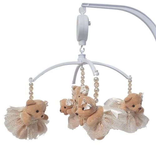 Mobile para Berço Bebê Musical Ursa Bege MARCA: ERICH BABY Produto Certificado pelo Inmetro CE-BRI/IQB - 6437 NM 300/2002 Segurança do brinquedo O móbile é um item muito importante na decoração, bastante gracioso, meigo e lúdico Seu movimento vai entreter o bebê dentro do bercinho, ideal para embalar o sono do neném Os móbiles musicais são ótimos para estimular audição e visão do bebê. Não é a toa que eles são pendurados acima do seu amor. Especialistas dizem que os móbiles ainda estimulam o senso de direção e lateralidade, fazendo com que a criança acompanhe o objeto de um lado para o outro. Pensando em todos os benefícios para o bebê, a montagem do móbile é feita com os ursinhos olhando para baixo, para o bebê visualizar o ursinho por completo e estimula-lo ainda mais. Conteúdo: - Mobile musical e giratório com 4 bichos de pelúcia - Acompanha 1 suporte para fixar no berço e caixa de música à corda sem necessidade de uso de pilha. Contém a trava de interrupção, a canção dura em média de 2 a 3 minutos. Cores e estampas podem ser alteradas segundo nosso . Medidas: - Bichinho de pelúcia 9 cm - Suporte móbile: Altura: 55.00 cm Largura: 35.00 cm Comprimento: 45.00 cm Peso: 360 gramas Modo de montar: O suporte se encaixa em qualquer Berço desmontável, Chiqueirinho, Carrinho e Berço Americano. Basta encaixar as peças e rosquear no berço que o móbile estará preso. Limpeza: Basta limpar com pano úmido. Embalagem: Largura 22,00 cm Altura 8,00cm Comprimento 31,00 cm Peso 500,00 g Marca: Não Informado