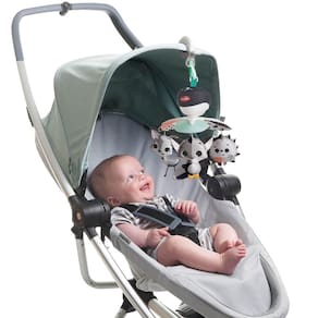 Móbile que pode ser encaixado em diferentes acessórios, como berços, cercados, bouncers, carrinhos e moisés. Oferece 30 minutos de música contínua. Design exclusivo para o desenvolvimento visual dos recém-nascidos, em preto e branco. Para estimular a diversão e o desenvolvimento com muito estilo!