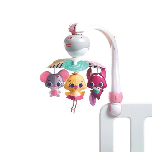 Móbile que pode ser encaixado em diferentes acessórios, como berços, cercados,bouncers, carrinhos e moisés. Oferece 30 minutos de música contínua. Um mobilecolorido e cativante que vai a toda parte com o bebê!